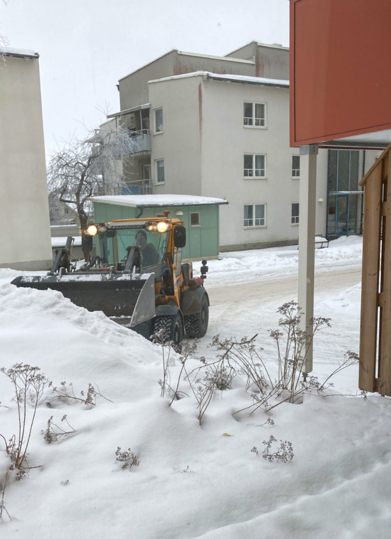 Imorse kom äntligen en liten traktor för att skyffla bort den stora snödrivan som legat framför mitt fönster och hindrat dagsljuset från att titta in