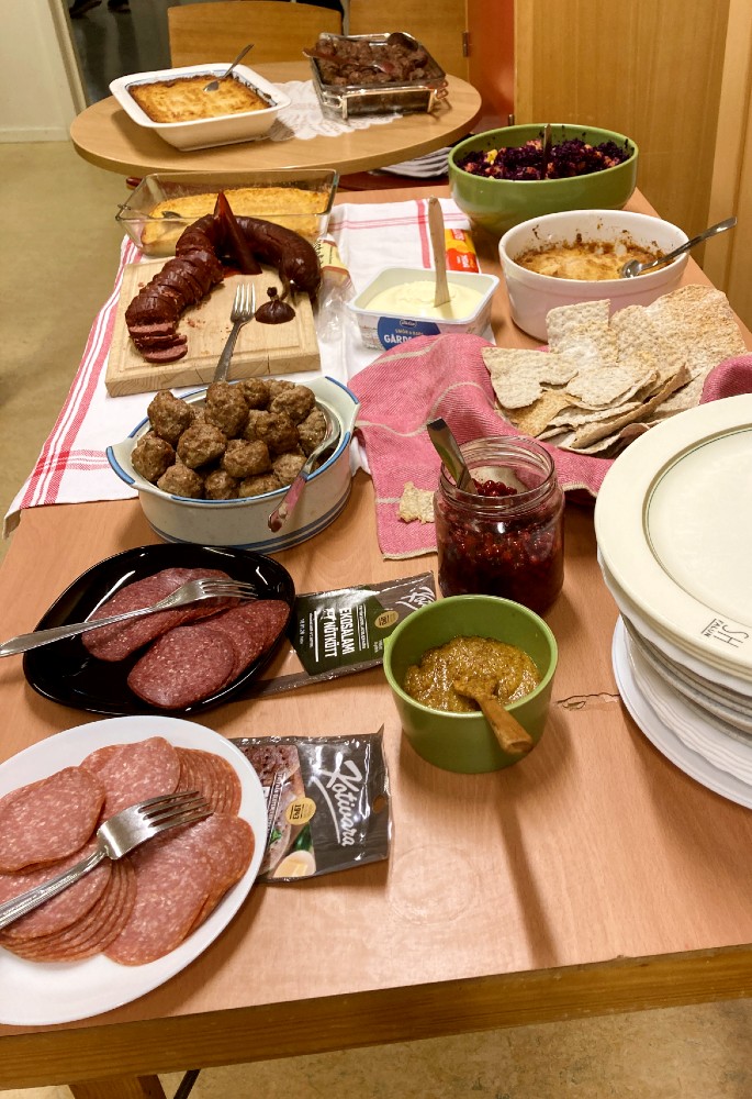 Vår cirkelledare Maria hade ställt till med avsmakning av julens finska favorit, kålrotslådan samt köttbullar, hembakt rågknäcke och annat gott. Tusen tack Maria med föräldrar som hjälpt till med maten.