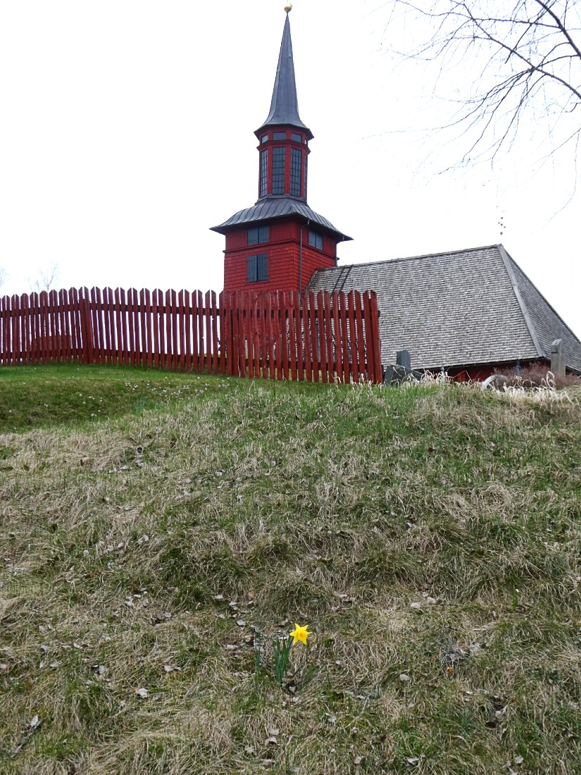 En gul lilja har bestämt sig för att se sig om i världen utanför kyrkogården
