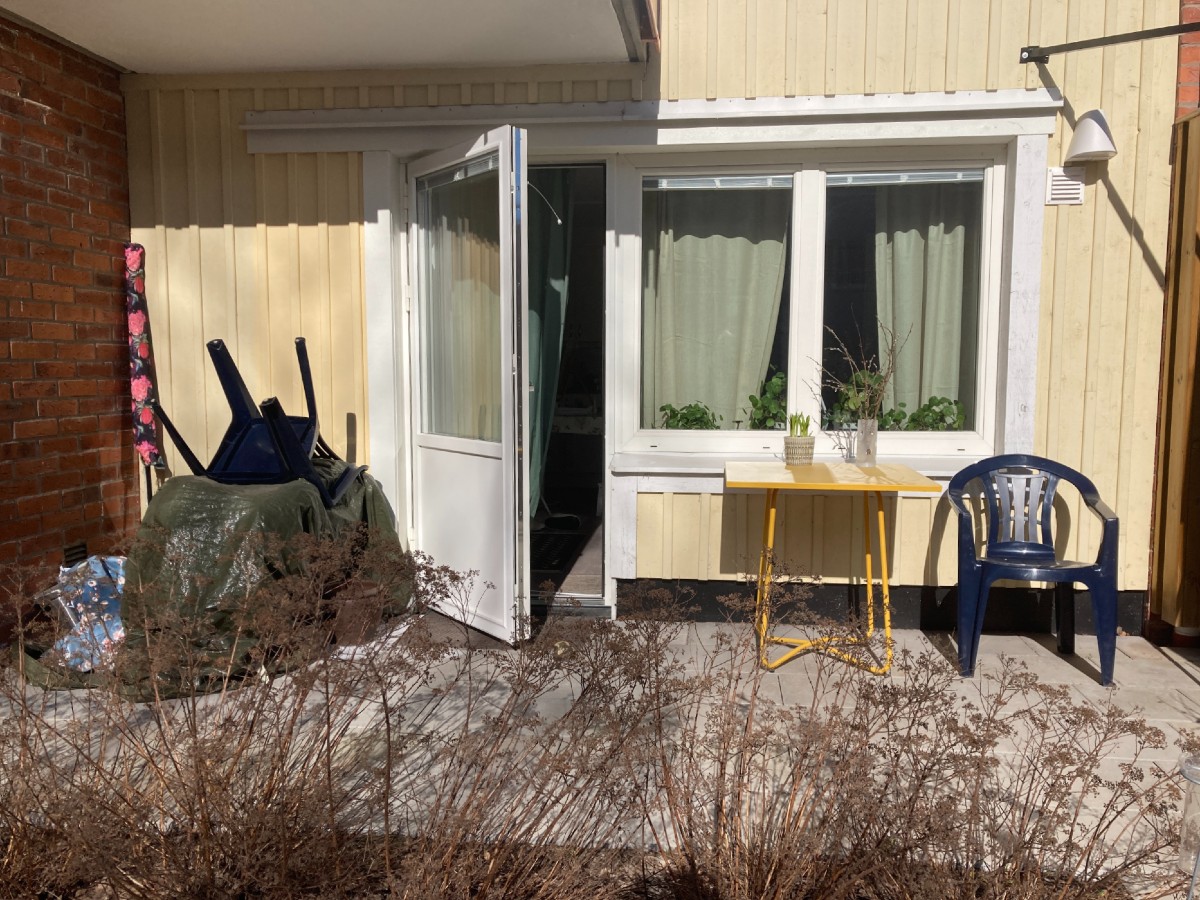 Hyresvärden får gärna komma och klippa bort de torra vissnade fjolårsbuskarna, då känner jag att jag vill ta fram resten av utemöblerna
