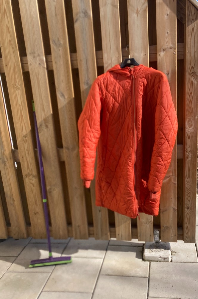 Solen skiner, vinterkappan är nytvättad och ska nu hängas i förrådet!