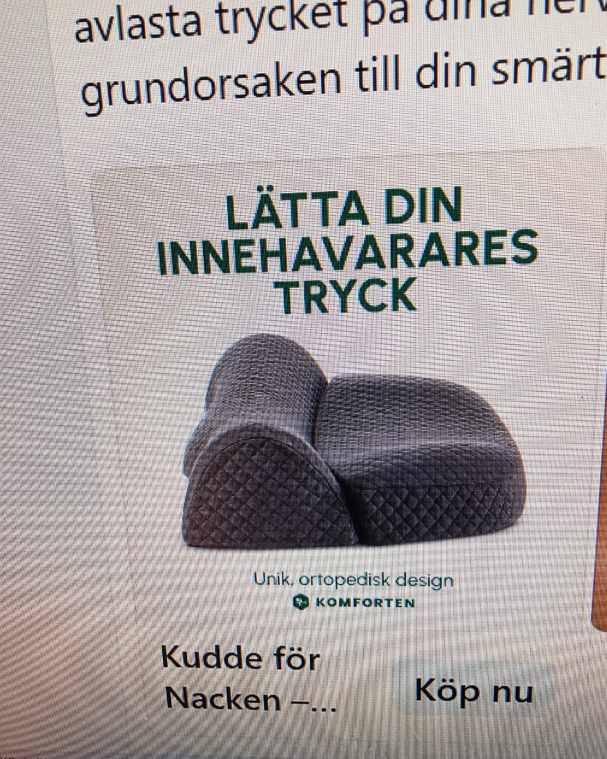 En period fick jag upp tiotals olika kuddar i mitt flöde, ja, jag hade förstås klickat på någon och sen var drevet igång. Seriös tillverkare…näää