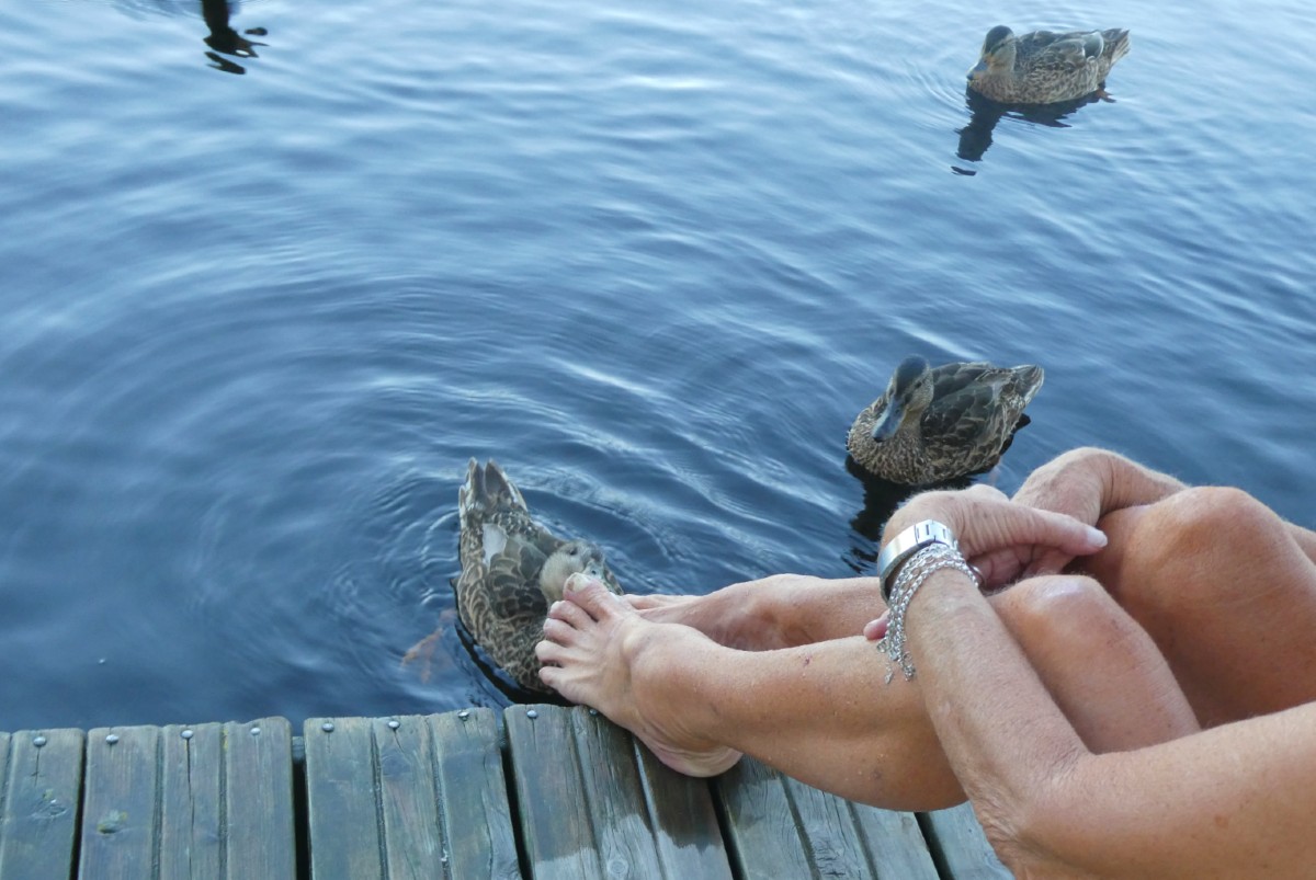 Jag bodde ett stenkast från ån och hela sommaren kunde vi ta våra dopp där, ibland i sällskap med änderna