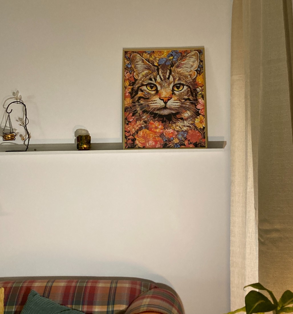 Det enda jag åstadkommit idag är att jag ramat in och hängt upp mitt senaste alster på väggen, söt kisse!