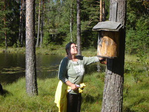 Dagens promenad ledde oss till en tjärn där jag beundrar en stor fågelholk