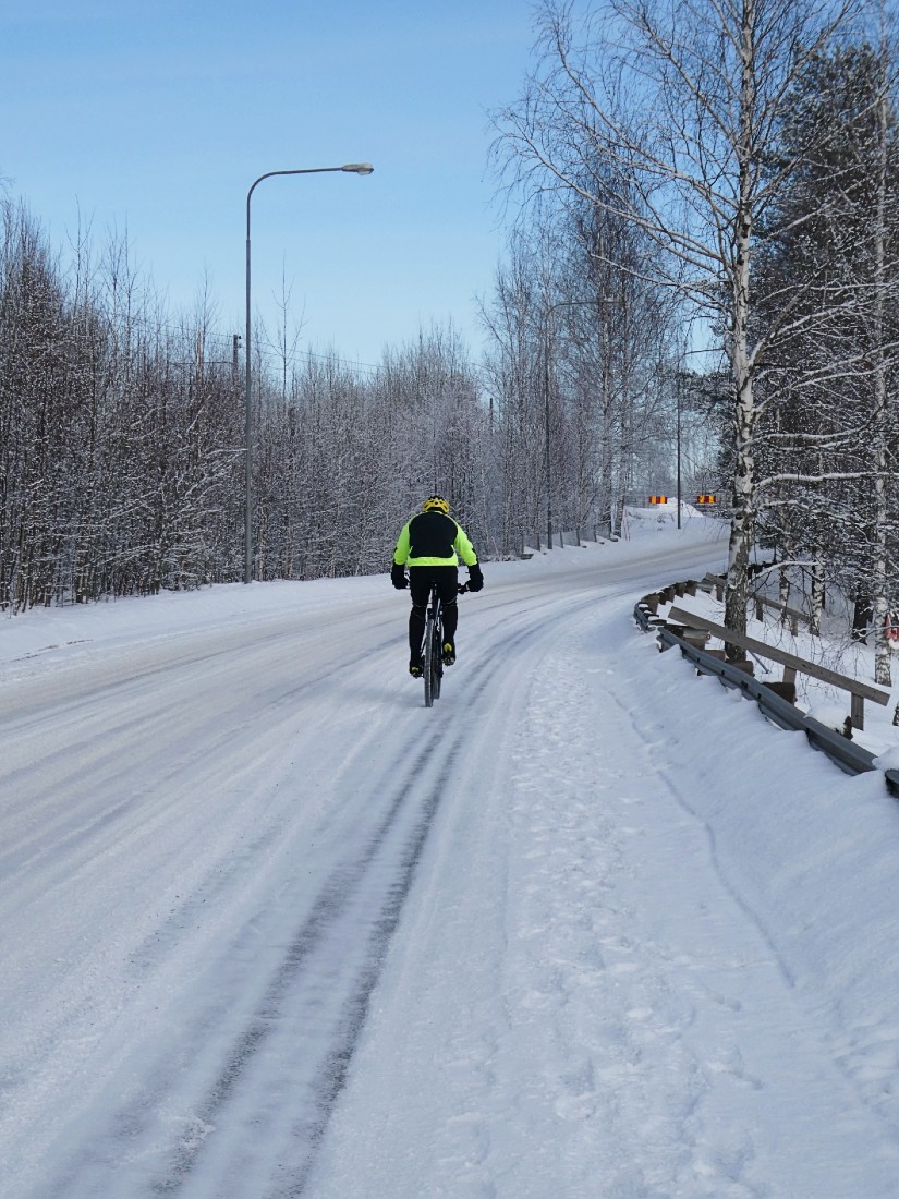 Här i Falun är det inte ovanligt att se cyklister även vintertid, cykeldäcken är extra breda
