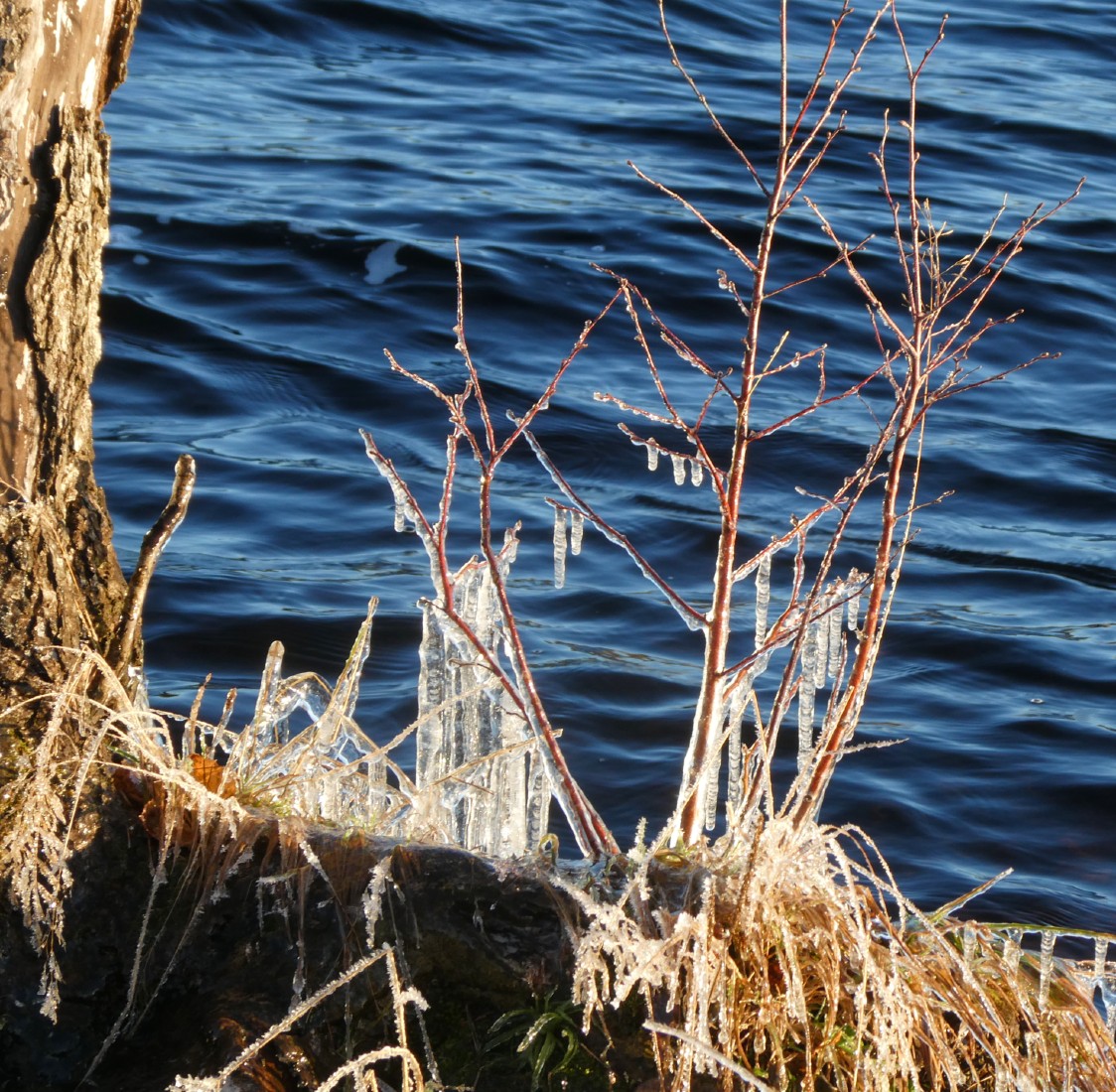 Förra veckan fick vi några minusgrader, och frost och tunn is förgyllde naturen.