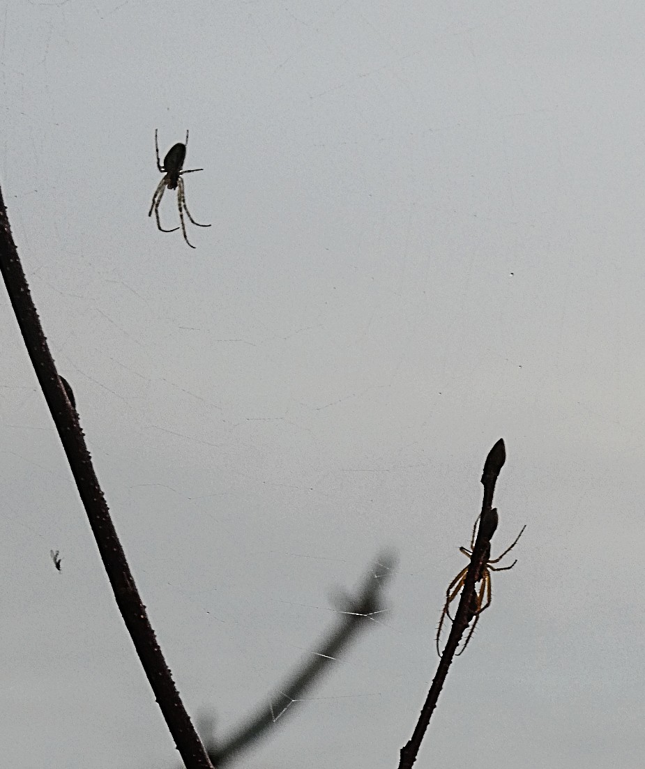 Här var det inte dessa små gynnare jag fotade utan en buske, men spindlarna som klängde här var värda lite uppmärksamhet