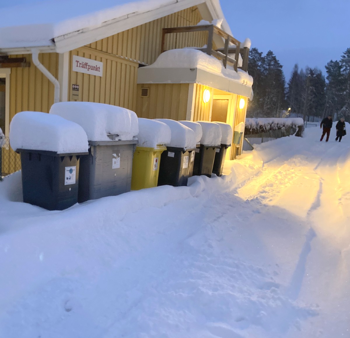 Rejäla snömössor på soptunnorna. Fick en bild från Mora och där hade de fått 50cm snö en natt. Det räcker nu och -22 är onödigt kallt, då hade jag gjort som kameran och gått i strejk. Men för varje dag som går så går vi en dag närmre våren – det är mitt mantra nu! Ha en fin kväll. Kram