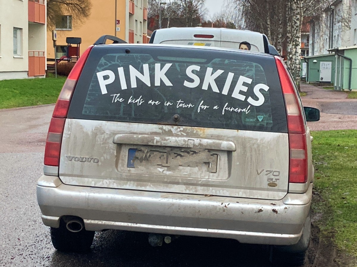 Pink Skies fick jag googla. Aldrig hört talas om. Gillar texten att kidsen är i stan på gund av en begravning – hahaha:-)