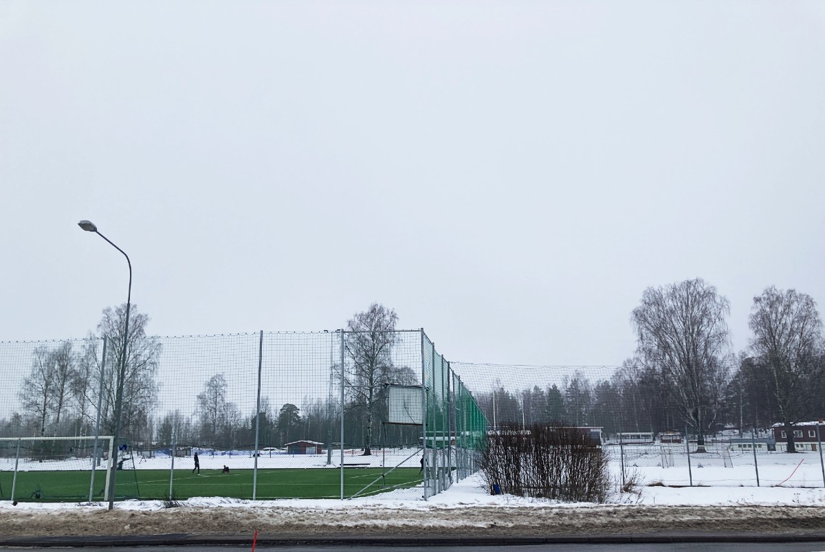 Färskaste fotot från dagens promenad till butiken, konstaterar att det var bra att vi fått en uppvärmd konstgräsplan så fotbollsgänget kan lira även på vintern
