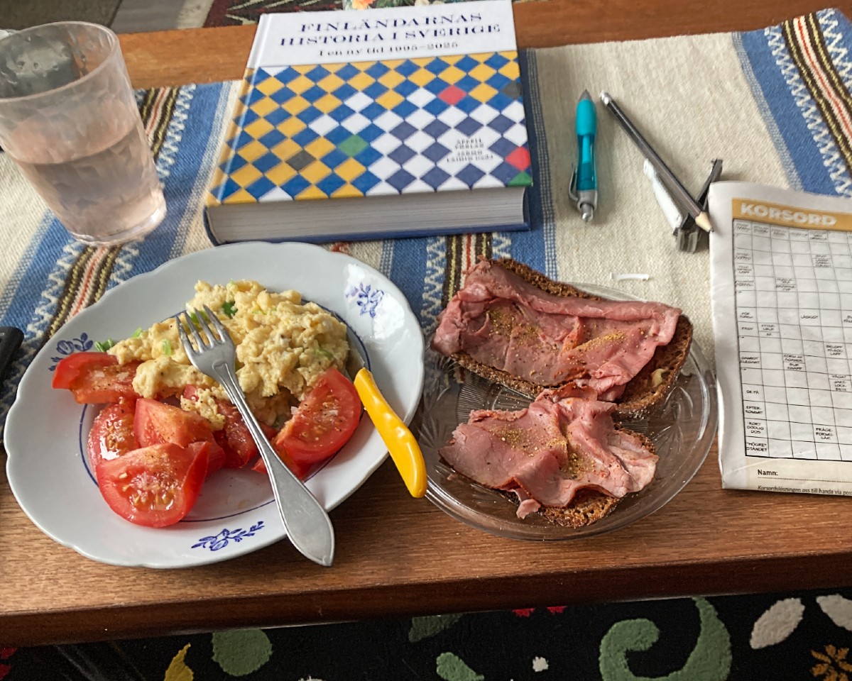 Kantstött halvt antik, ringrostig finska som bott i Sverige mer än halva livet, före detta bankkamrer, krögare, hamburgervändare, lucknucka, numera skogsmulle som håller grytan puttrande, gärna med svamp och annat ätligt ur naturens skafferi, matte till hund och dammråttor, mamma, mormor, gammelfarmor/mormor