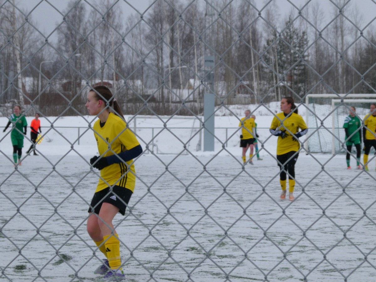 Men kära nån! Tjejer i kortbyxor lirar fotboll på en vit och vintrig plan!