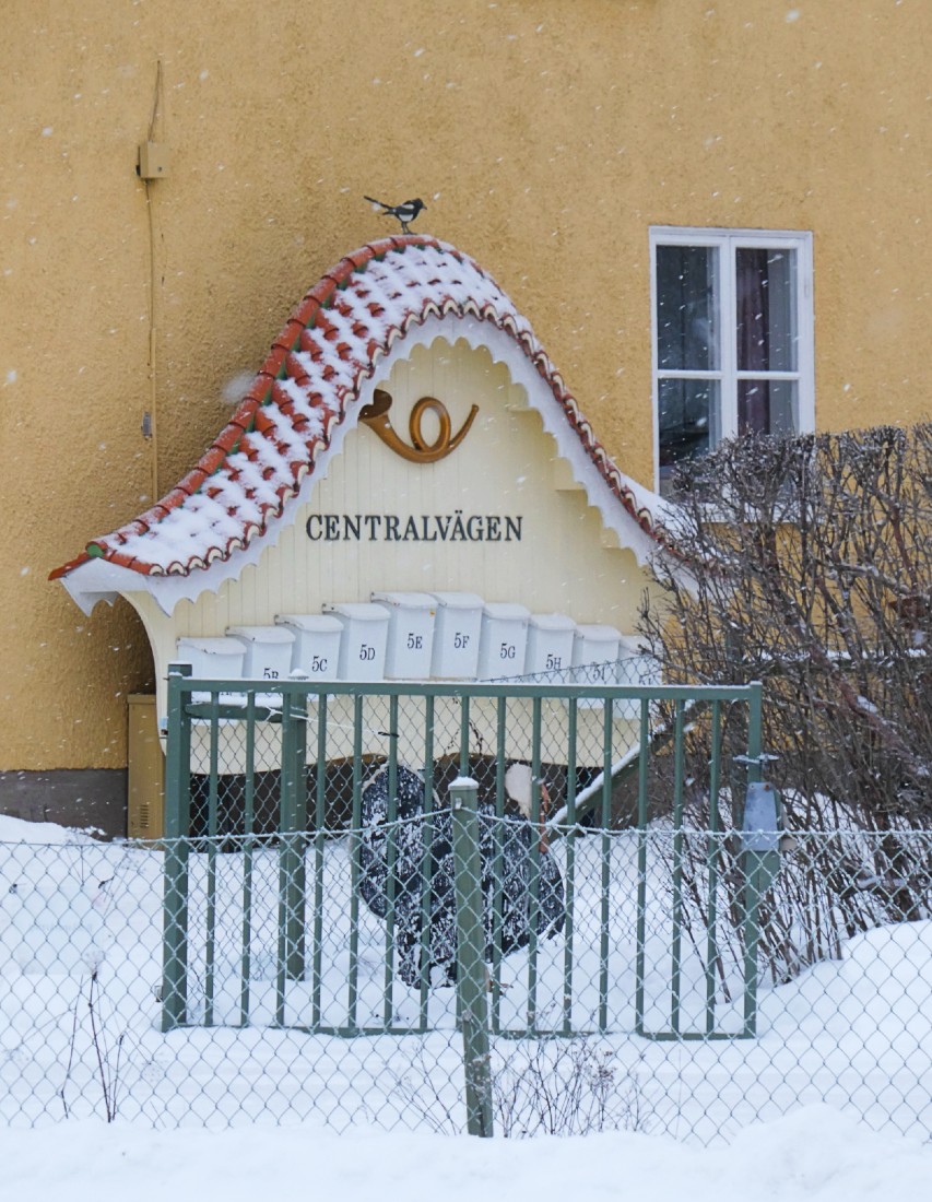 Trist att sopkärlen inte töms… ser ju inte så fint ut fastän färgerna nog lyser upp i snön…
