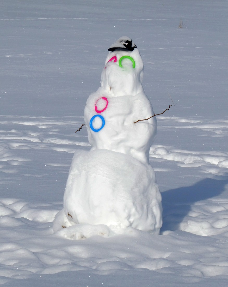 Sista dagen på Olympiska spelen, då passar väl denna snögubbe med OS-ringar perfekt?