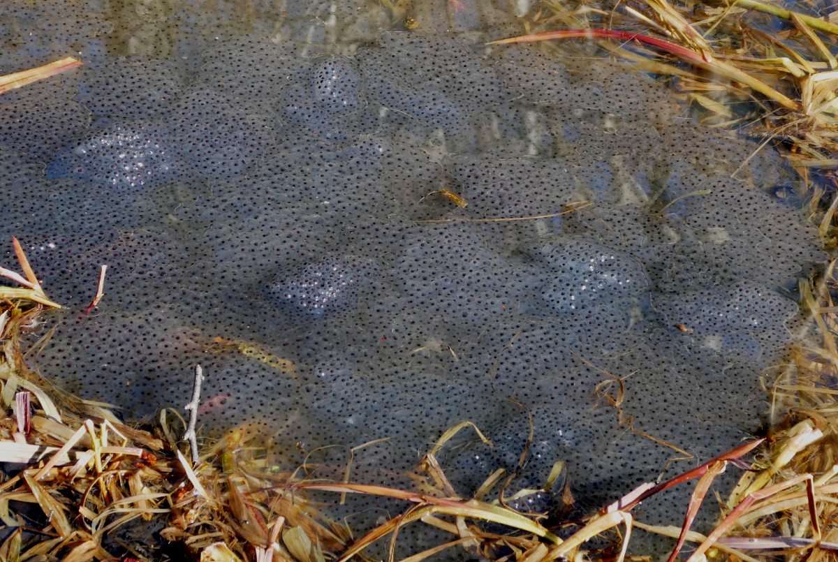 Längs stigen ser jag vattenfyllda pölar med….små svarta prickar…..av grodrom i tusental….