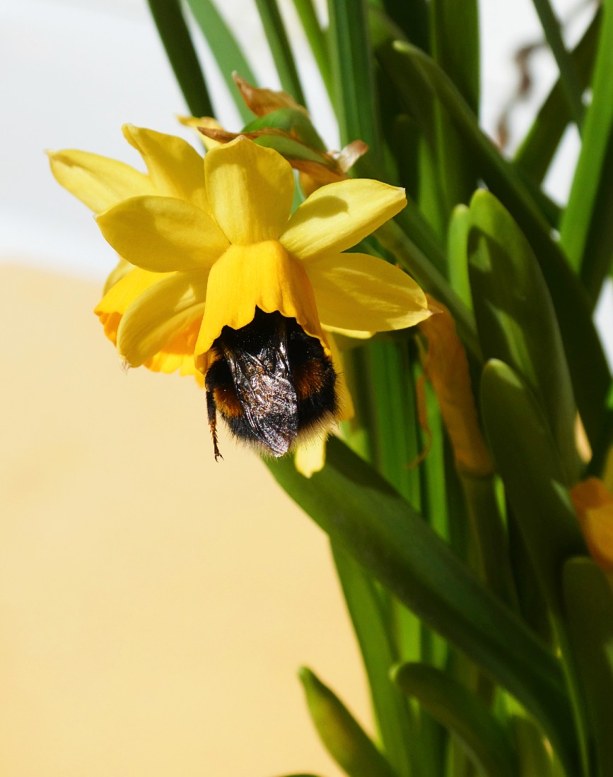 Humlerumpan är så stor så den inte får plats i kronblomman, den flög från blomma till blomma och var till sist så mätt att den knappt orkade flyga, kunde följa middagsbestyren från min uteplats…