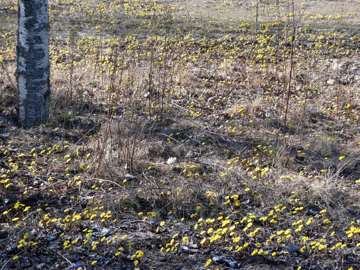 Mycket i naturen har vaknat till liv denna vecka, och som glad pensionär har jag möjlighet att se och glädjas åt vartenda ett! Minns någon hur jag längtade efter de första tussilagona? Till sist fick jag tips om var de fanns, hittade en liten bukett och blev så glad för den. Idag hittar man enorma tussilago-mattor alldeles nära mig. Här växer och frodas tusentals exemplar på båda sidor om en bilväg. När jag var där för att fota var jag inte den enda, några fotade tussilagofälten på avstånd medan andra stod på knä och tog microfoton.